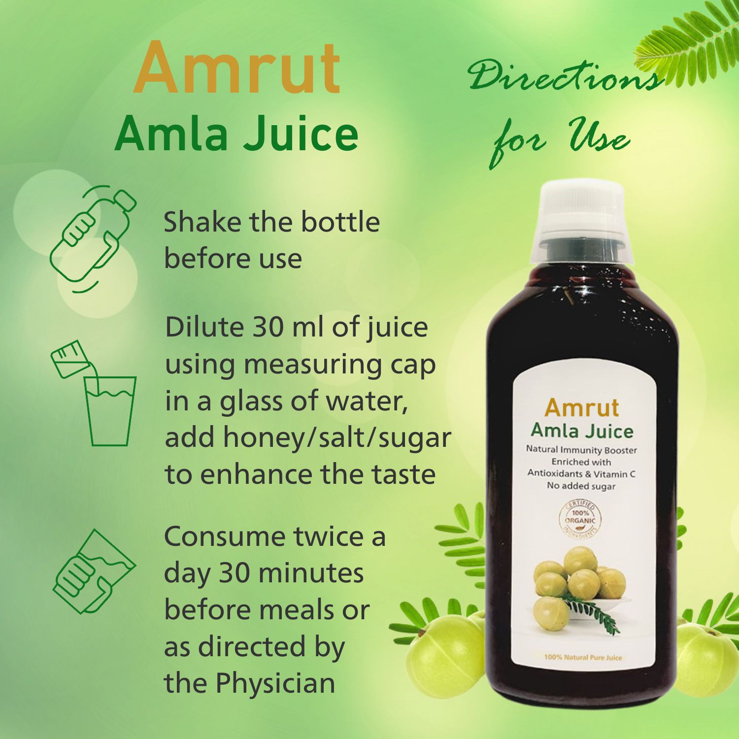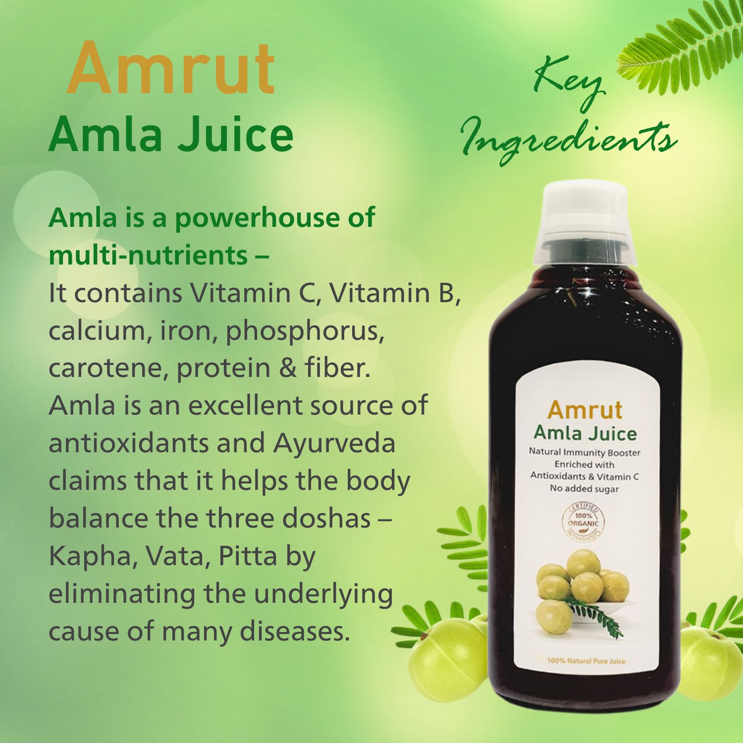 Amrut Amla Juice is made from the purest, nutritionally rich, and fresh amla. It is power-packed with potent antioxidants that help in enhancing compromised immunity. It is loaded with Vitamin C, which is a natural immunity booster. The beta-carotene in the Indian gooseberry plays a vital role in fighting the damage caused by free radicals and boosts strength and stamina.