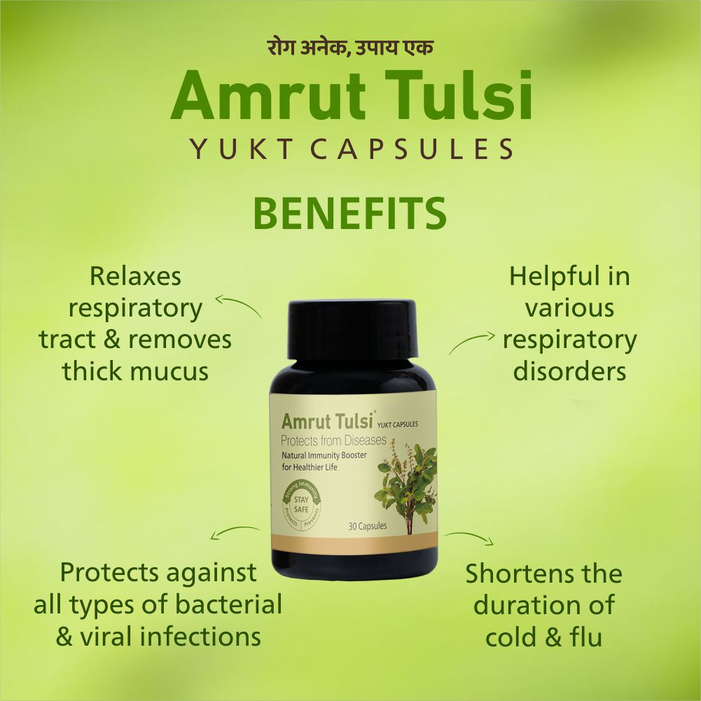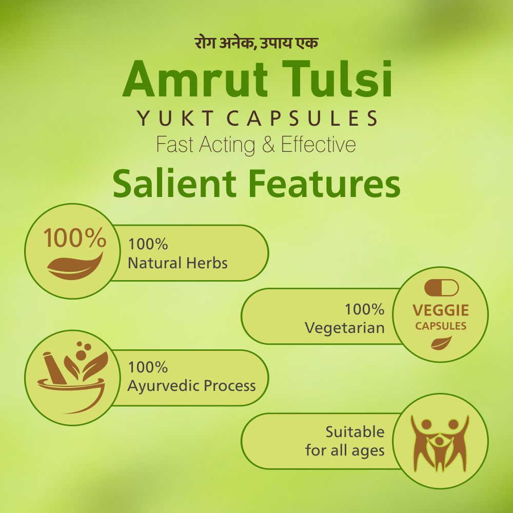 Amrut Tulsi Yukt Capsules are made with 100% natural ayurvedic herbs and have no side-effects even after prolonged use.