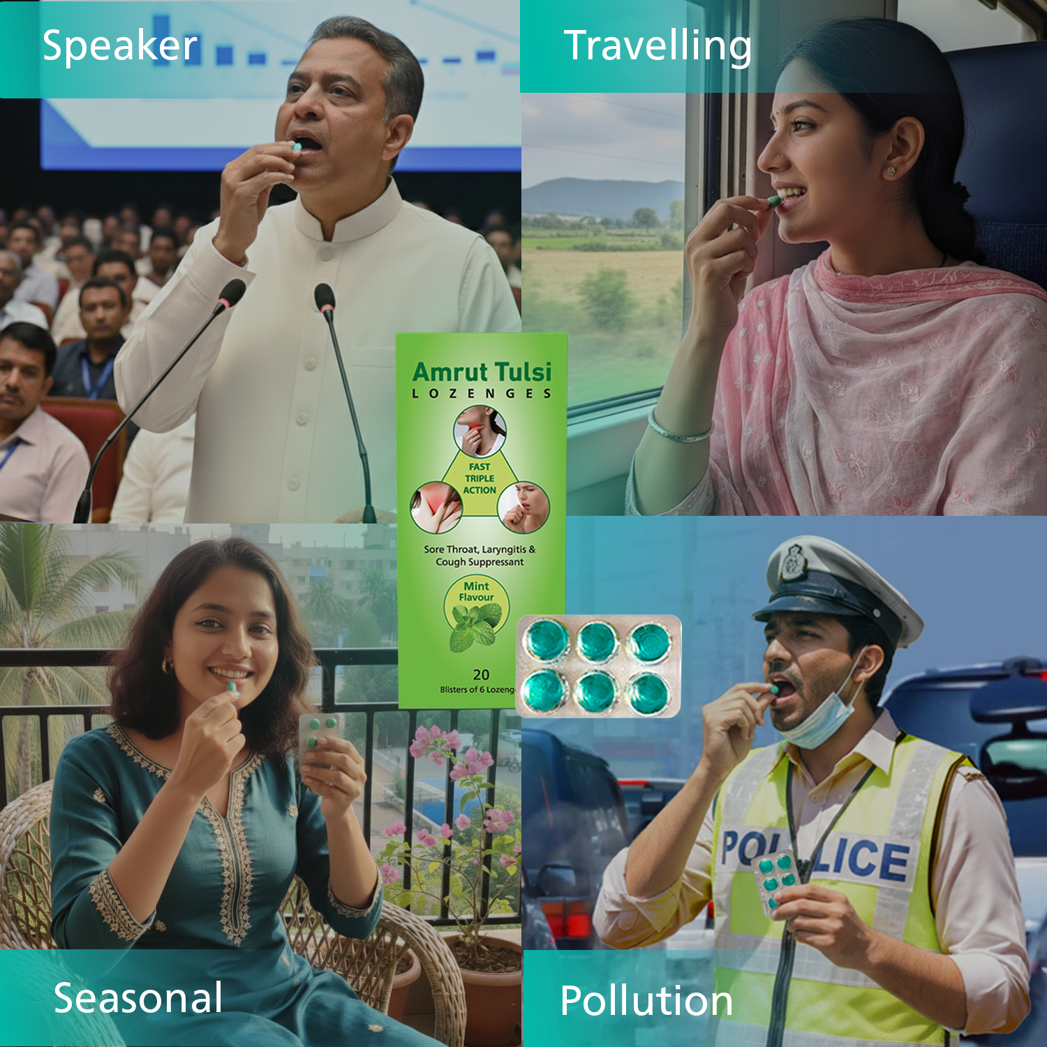 Amrut Tulsi Lozenges are available in two delicious flavours – Ginger-Mint and Honey-Lemon.
