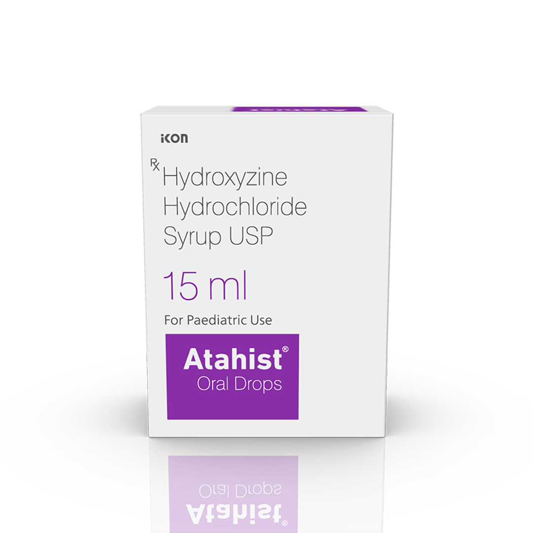 Atahist Drops is used to treat anxiety and helps to get relaxed before or after surgery. It is also used to treat symptoms of skin allergy like itching, swelling, and rashes in conditions such as eczema, dermatitis, and psoriasis.