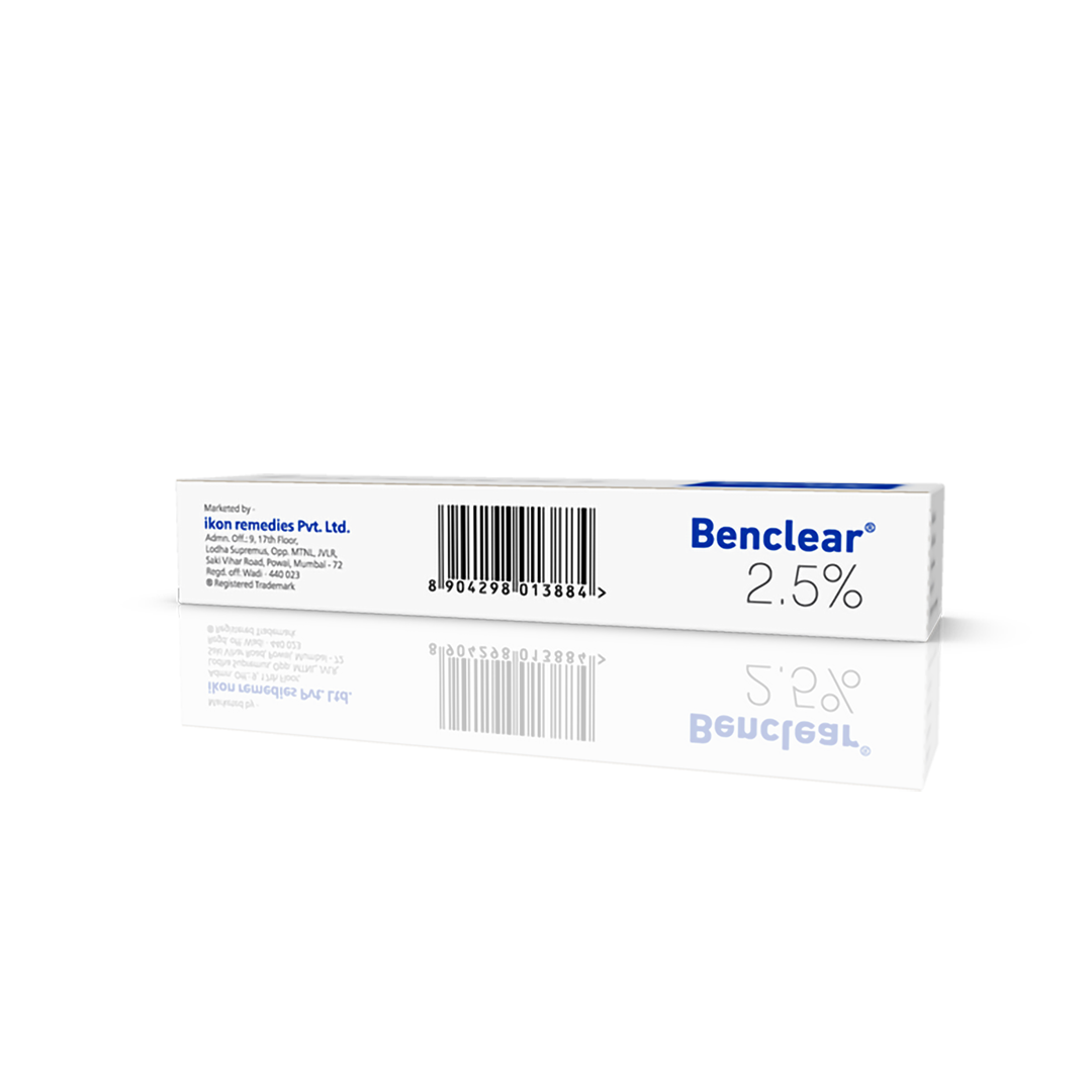 Benclear 2.5% Gel is an organic compound. It has a keratolytic property, i.e., it even out the uneven skin. When applied on acne, it releases oxygen which kills the bacteria. This is how it works to cure your acne.