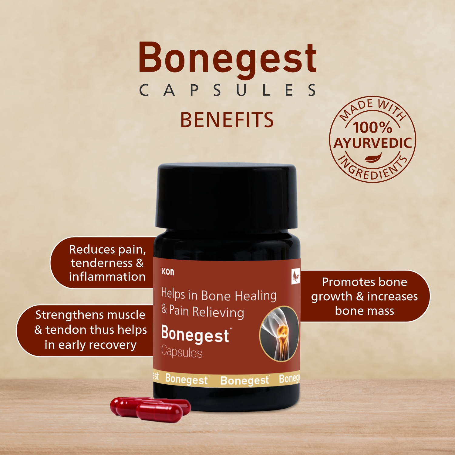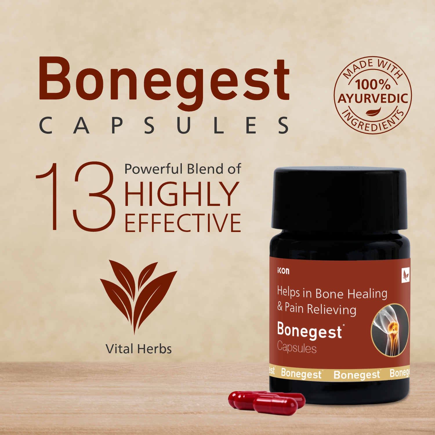 Bonegest Capsules bring you the benefits of powerful Ayurvedic herbs traditionally used to strengthen and rejuvenate the bones. Creating a synergy with the herbs Arjuna, Ashwagandha, and Hadjod assists in the absorption of calcium by delivering it from the bloodstream and into the bones. Beneficial to young growing bones as well as aging bone tissue, the herbs in this formula help maintain healthy bone density while gently kindling the digestive fire to support the body’s natural toxin cleansing mechanisms. Vata, which can disturb bones when imbalanced, particularly in the later years of life, is also balanced and grounded by the warm, nourishing herbs in this blend.