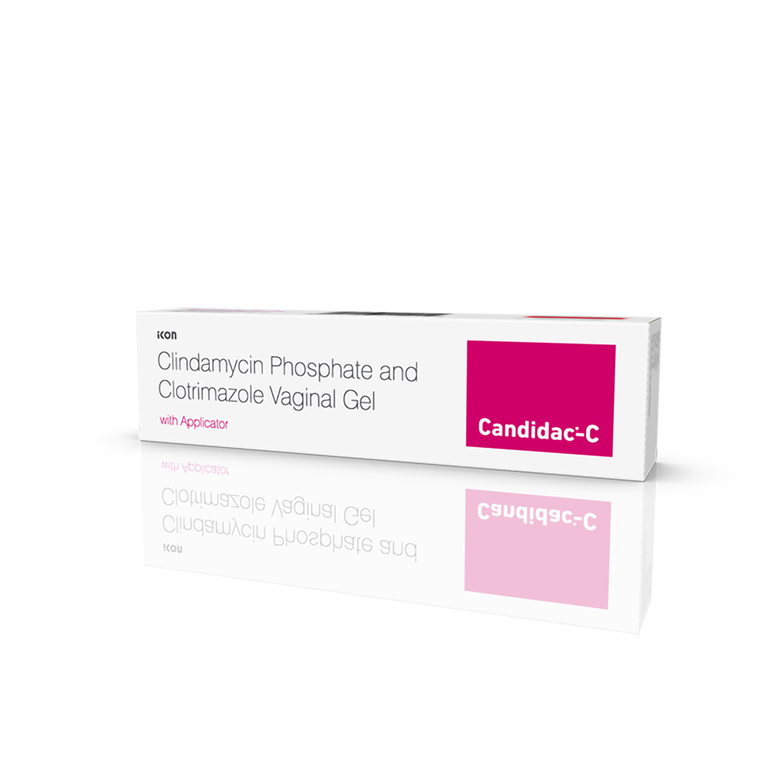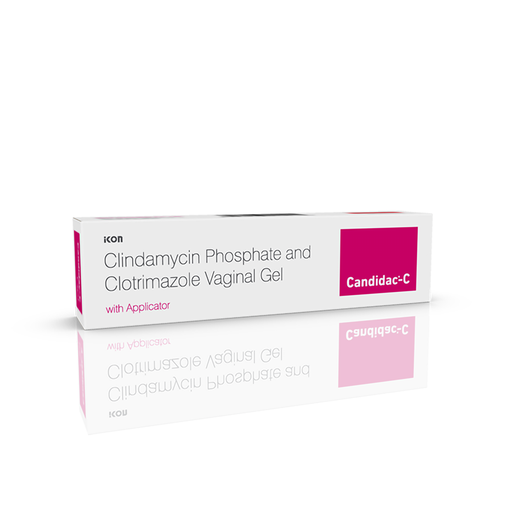 Candidac-C Gel is a combination of two medicines: Clindamycin and Clotrimazole. Clindamycin is an antibiotic that stops bacterial growth in the vaginal tract by preventing the synthesis of essential proteins required by bacteria to carry out vital functions. Clotrimazole is an antifungal that stops the growth of fungi by preventing them from making their protective covering. Together, they treat the vaginal infection effectively.