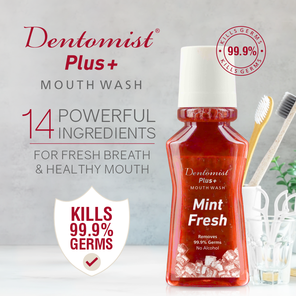 Dentomist Plus Mouth Wash is a boon for oral health care. Dentomist Plus Mouth Wash, a Infused with Chlorhexidine gluconate, that cleans the toxins out effectively & infuses the mouth with freshness, a germ-free and clean feeling, stronger & healthier teeth & gums. This unique formulation will have a synergistic effect on your teeth & gums, thus resuscitating dental health.