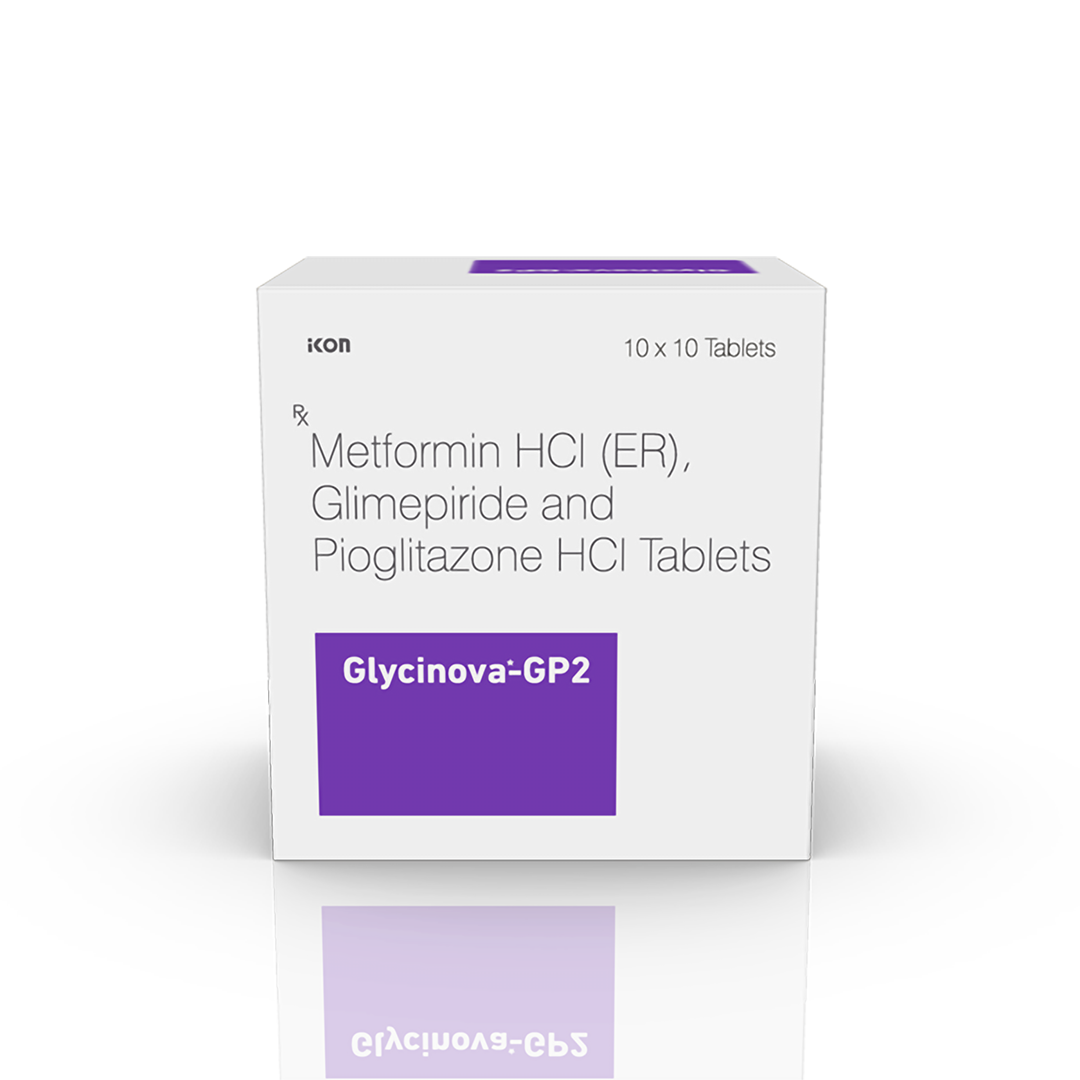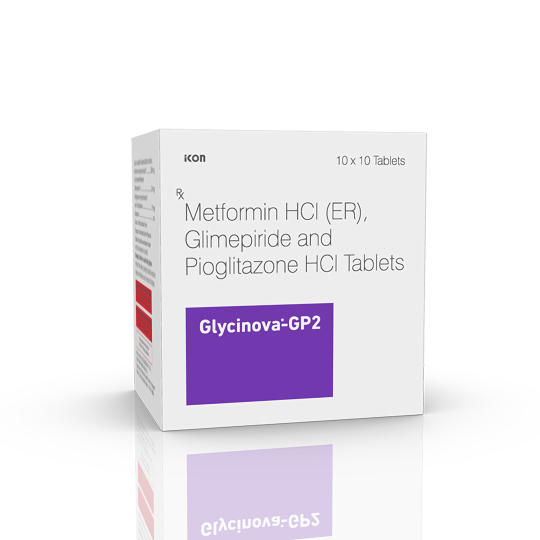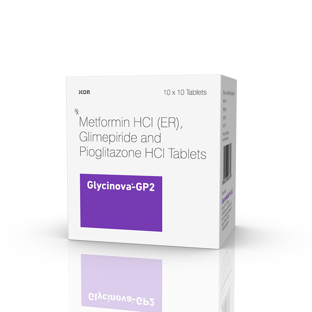 Glycinova-GP2 Tablets combination medicine helps control blood sugar levels. This medicine is used together with diet and exercise to improve blood sugar control in adults with type 2 diabetes mellitus. It helps in proper utilisation of insulin, thereby lowering the blood sugar levels.