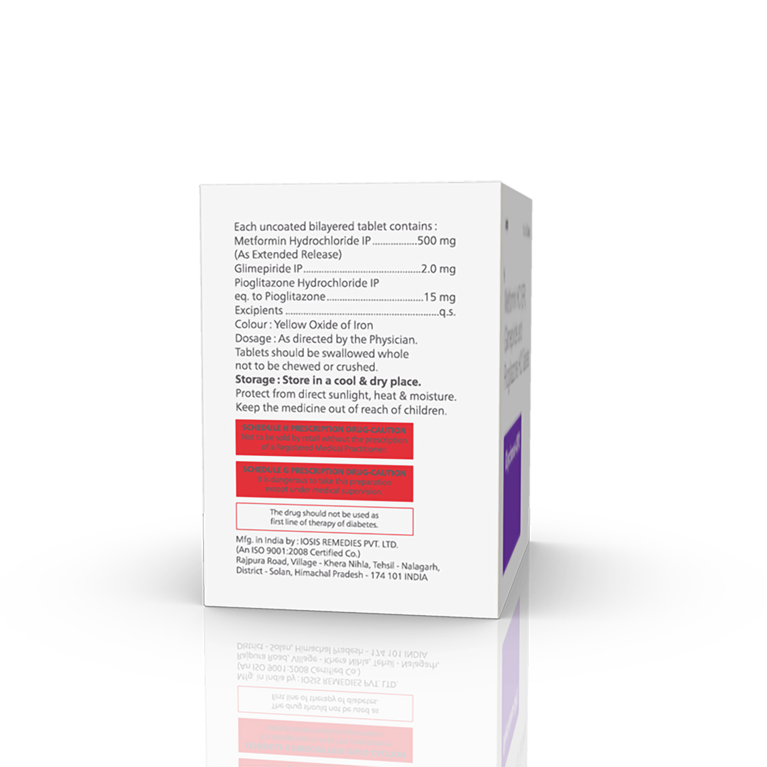 Composition : Glimepiride 2 mg, Pioglitazone 15 mg & Metformin (SR) 500 mg