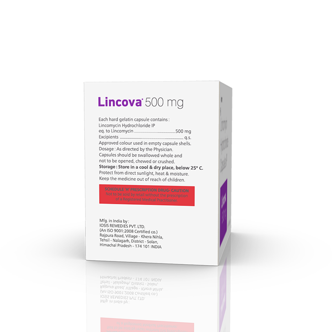 Lincova 500 mg Capsules is an antibiotic. It works by preventing synthesis of essential proteins required by bacteria to carry out vital functions. Thus, it stops the bacteria from growing, and prevents the infection from spreading.