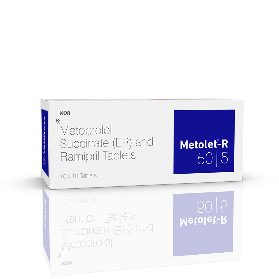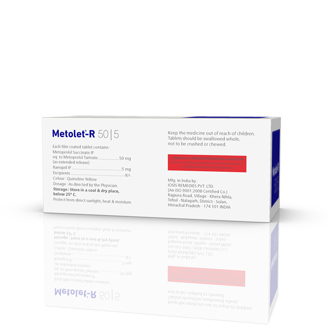 Metoprolol Succinate 50 mg (ER) & Ramipril 5 mg is a combination medication used to treat high blood pressure (hypertension) and manage heart failure. By combining a beta-blocker to slow heart rate (Metoprolol) and an ACE inhibitor to relax blood vessels (Ramipril), it helps prevent strokes and heart attacks.