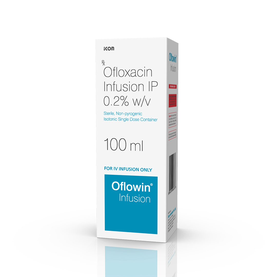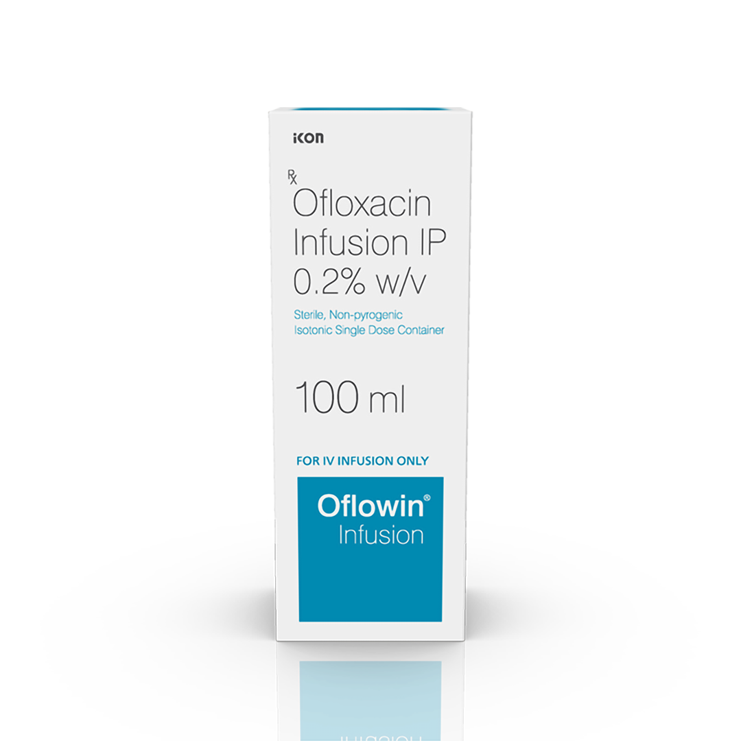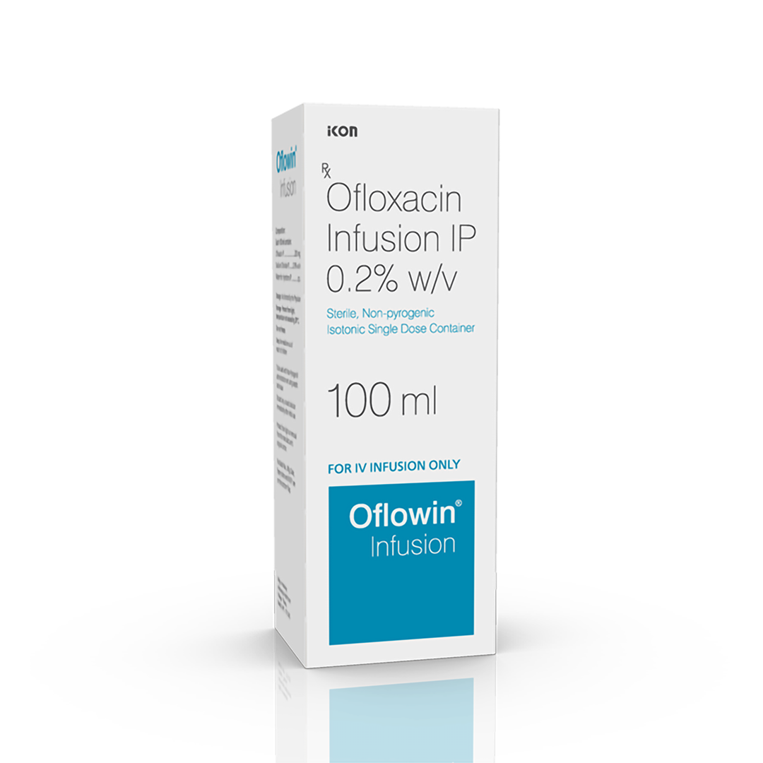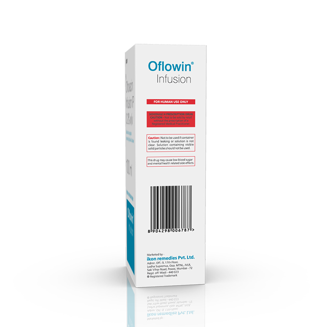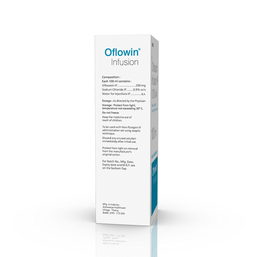 Oflowin Infusion is an antibiotic, used in the treatment of bacterial infections. It is also used in treating infections of the urinary tract, nose, throat, skin and soft tissues, and lungs (pneumonia). It cures the infection by stopping further growth of the causative microorganisms.
