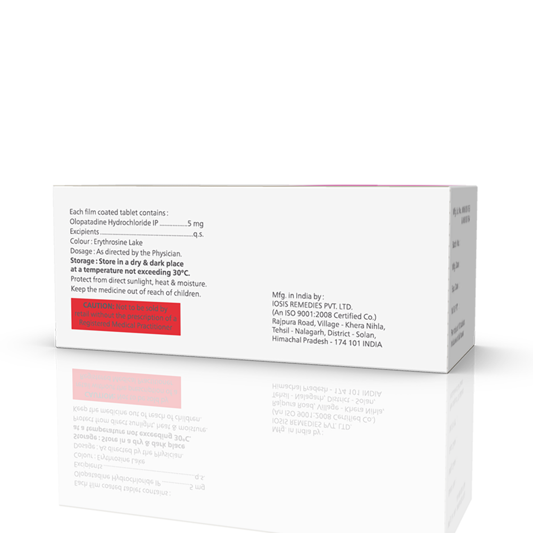 Olopat 5mg Tablet belongs to a group of medicines called antihistamines. It is used in the treatment of various allergic conditions. It relieves symptoms like itching, swelling, and rashes.