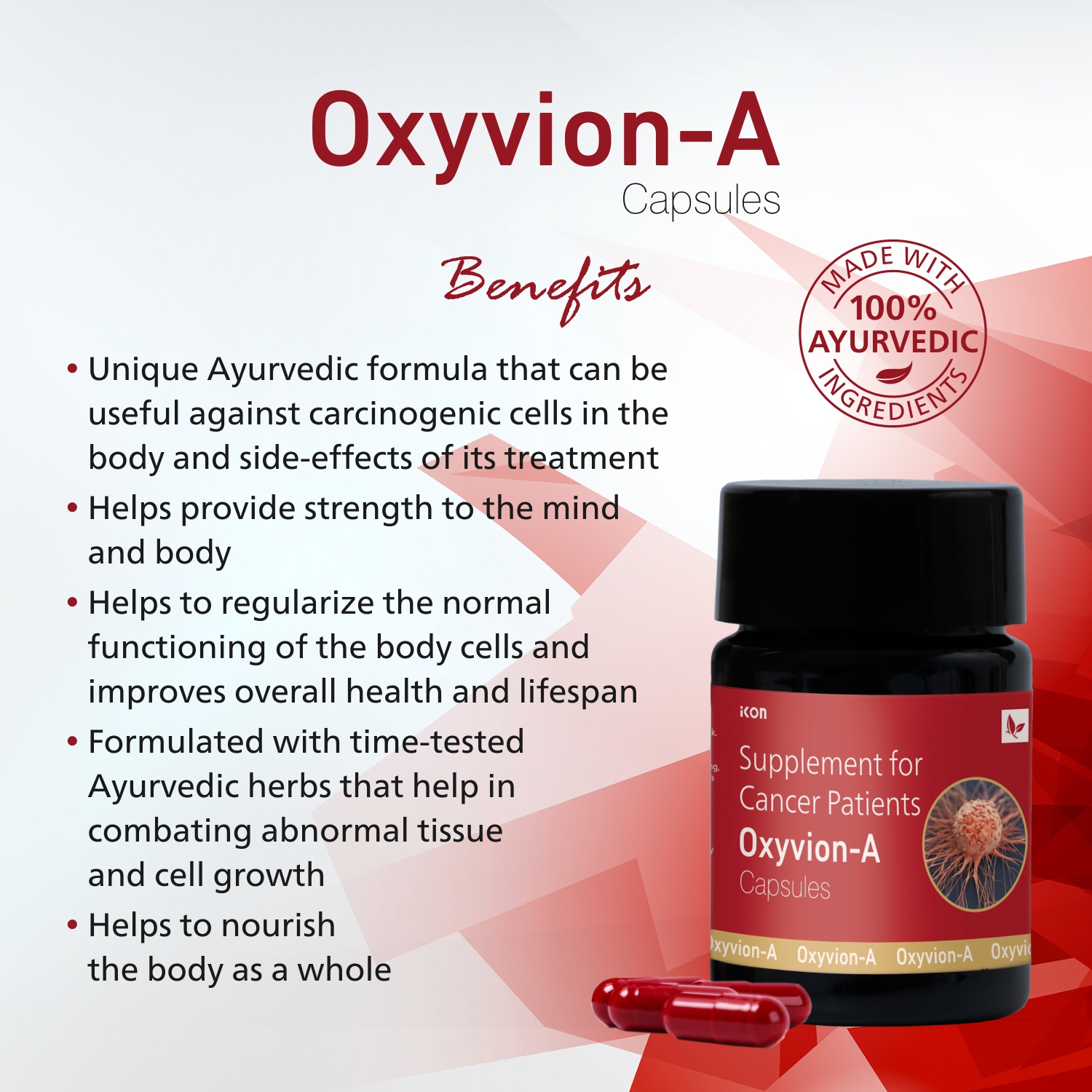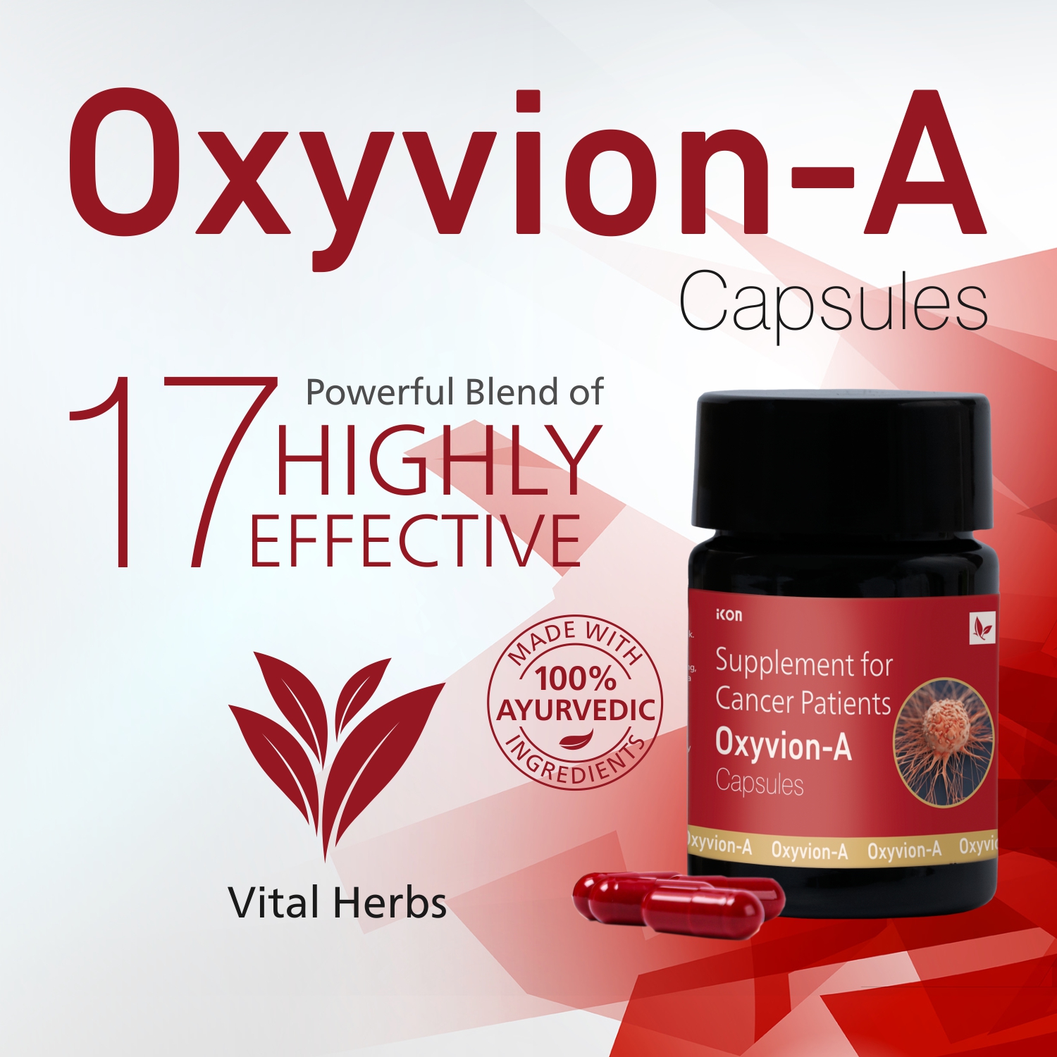 Ayurveda is a trusted and proven system of medicine for more than 5000 years. We have identified 15 anti-cancer herbs over a period of time and prepared Oxyvion-A Capsules. It fights cancer by inhibiting the growth and spread of cancer without side effects. This can be taken alone or along with conventional treatment such as surgery or chemotherapy.