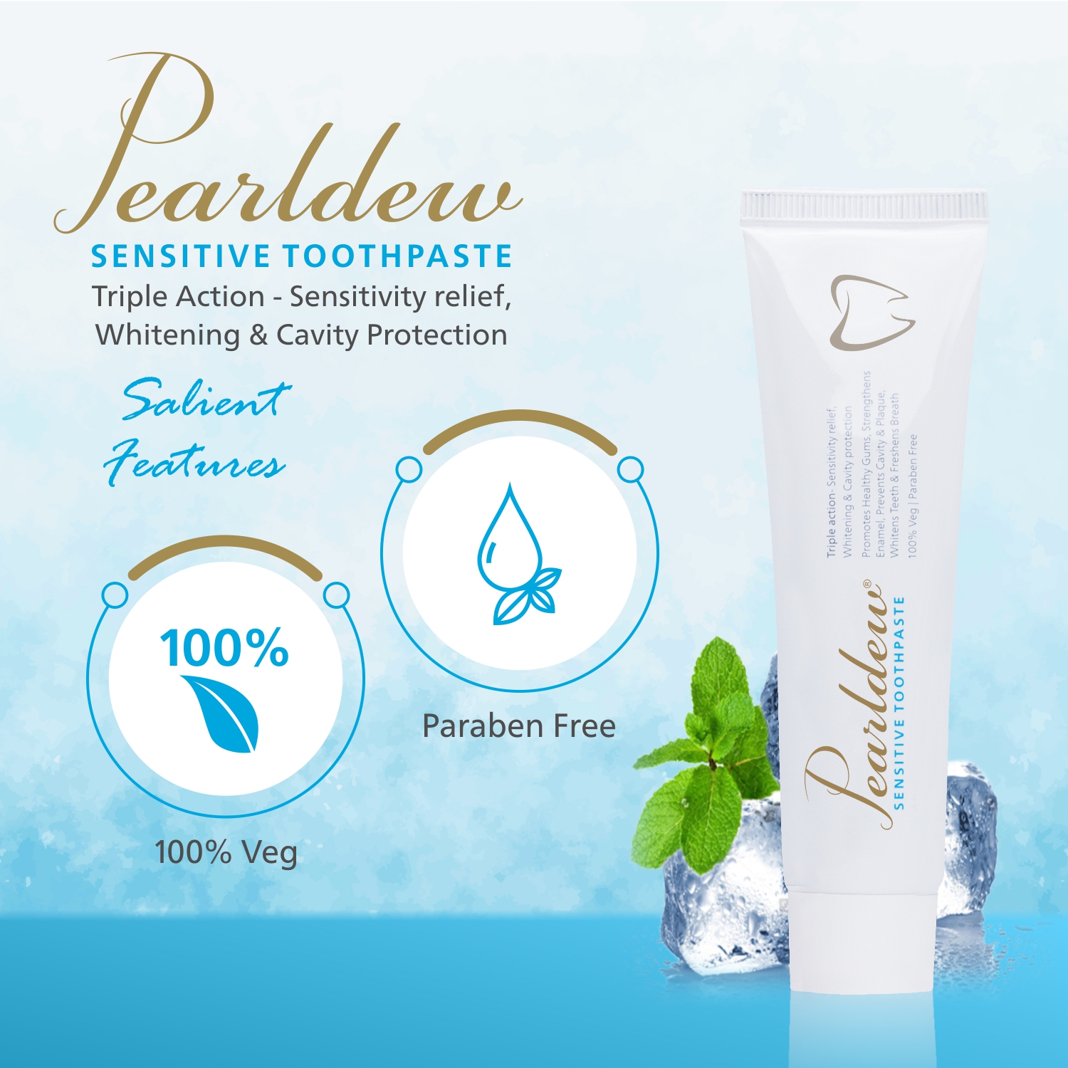 Specially formulated for sensitive teeth, Pearldew Sensitive Toothpaste soothes the nerve ends and builds a protective shield, providing relief from sensitivity. It also helps prevent some of the root causes of sensitivity and provides long hours of oral protection.