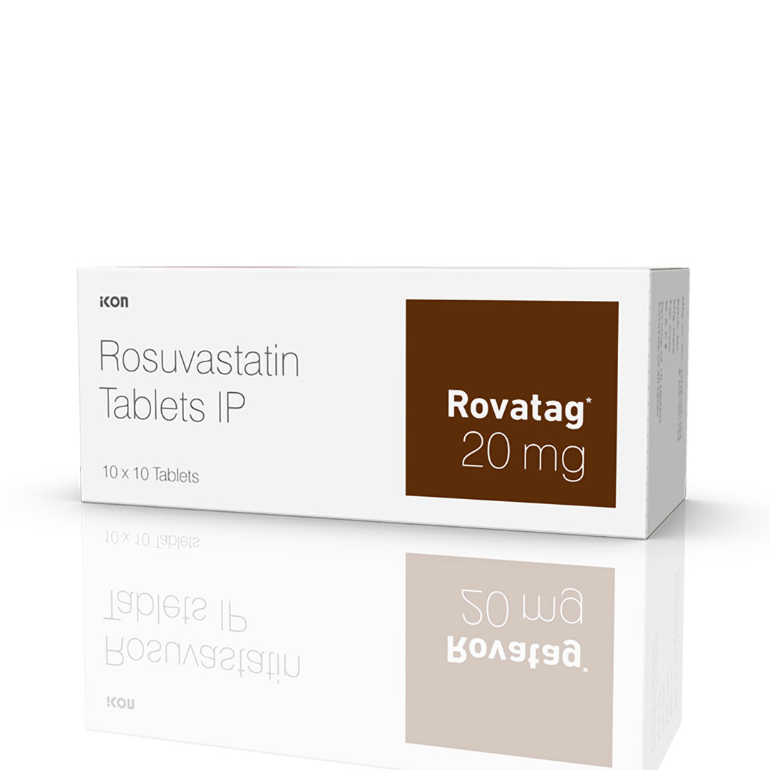 Rovatag 20 mg Tablets is a lipid-lowering medication (statin). It works by blocking an enzyme (HMG-CoA-reductase) that is required by the body to make cholesterol, thereby lowering “bad” cholesterol (LDL) and triglycerides and raising “good” cholesterol (HDL).