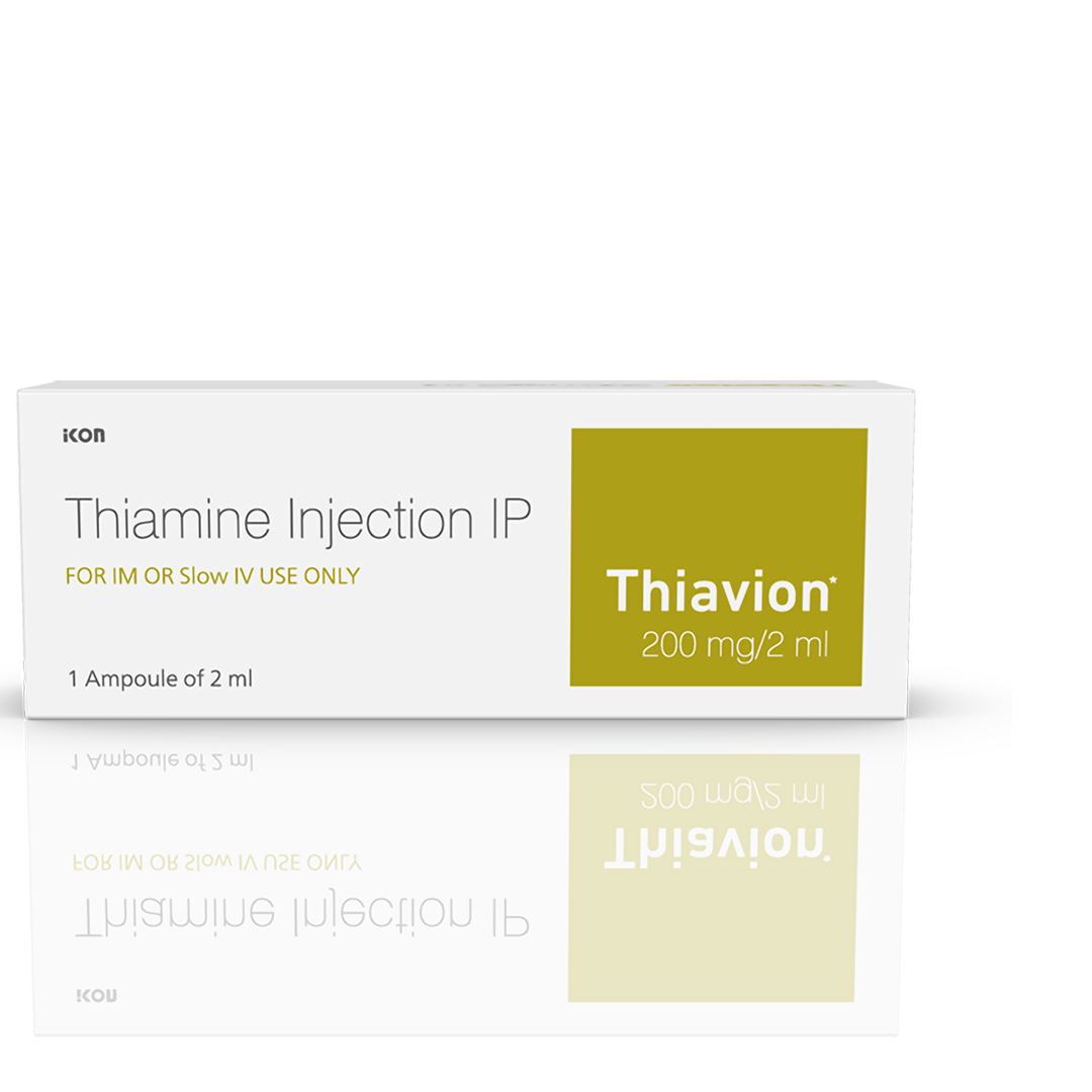 Thiavion 200 mg Injection is useful in improving mental health symptoms in people addicted to alcoholism and pain caused by diabetic neuropathy (nerve damage due to diabetes). It is also used to treat Beriberi disease; a condition caused due to prolonged vitamin B1 deficiency.