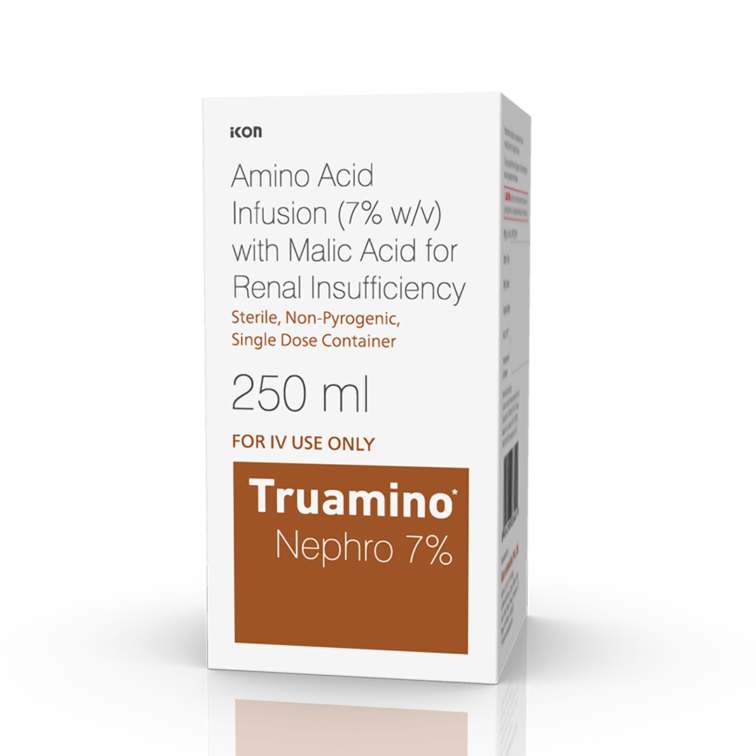 Amino Acids (Nephro) Injection 7% w/v is a specialized parenteral nutrition solution designed for patients with chronic kidney disease (CKD) or renal insufficiency. It provides essential amino acids to manage protein-calorie malnutrition while reducing nitrogenous waste buildup, often used in 250ml infusions