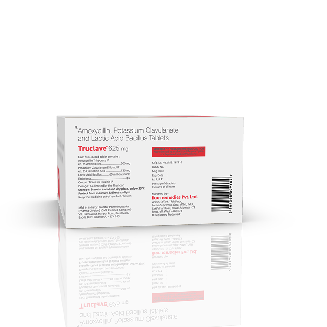Truclave 625 mg Tablets which contains Lactic Acid Bacillus, is an antibiotic medication used to treat bacterial infections in various parts of the body, including the ear, nose, throat, chest, lungs, teeth, skin, and urinary tract. This medication is effective against bacteria that have developed resistance to other treatments, making it valuable for treating tuberculosis that does not respond to standard therapies.