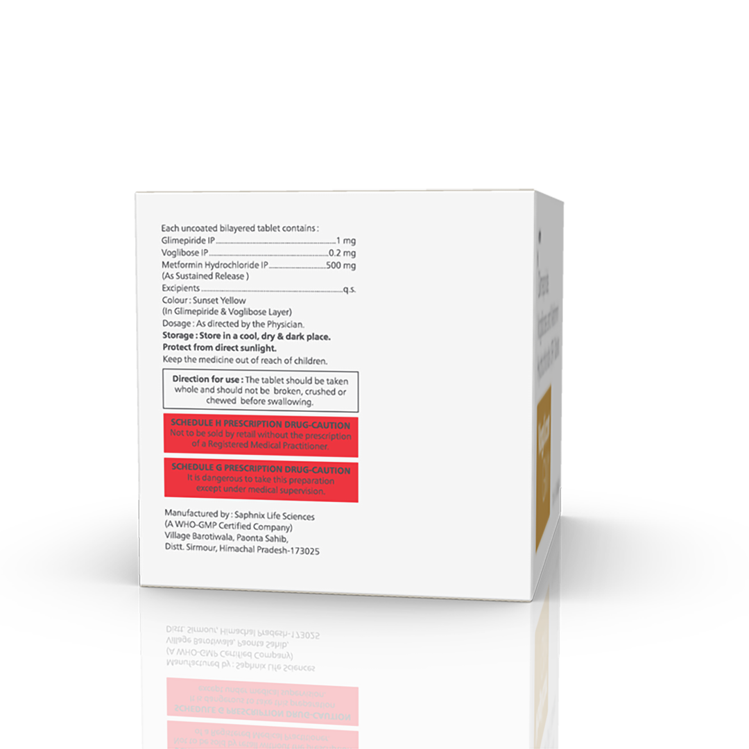 Composition : Voglibose 0.2 mg, Glimepiride 1 mg & Metformin Hydrochloride (SR) 500 mg