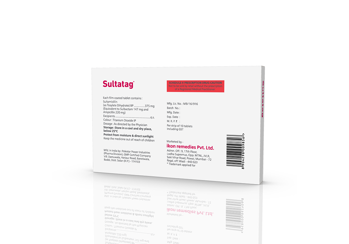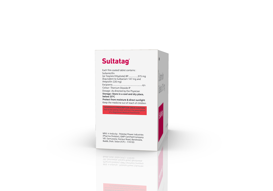 Sultatag 375 mg Tablets is a double ester of sulbactam plus ampicillin. It kills bacteria by preventing them from forming the bacterial protective covering. It has enhanced activity against bacteria and less antibiotic resistance.