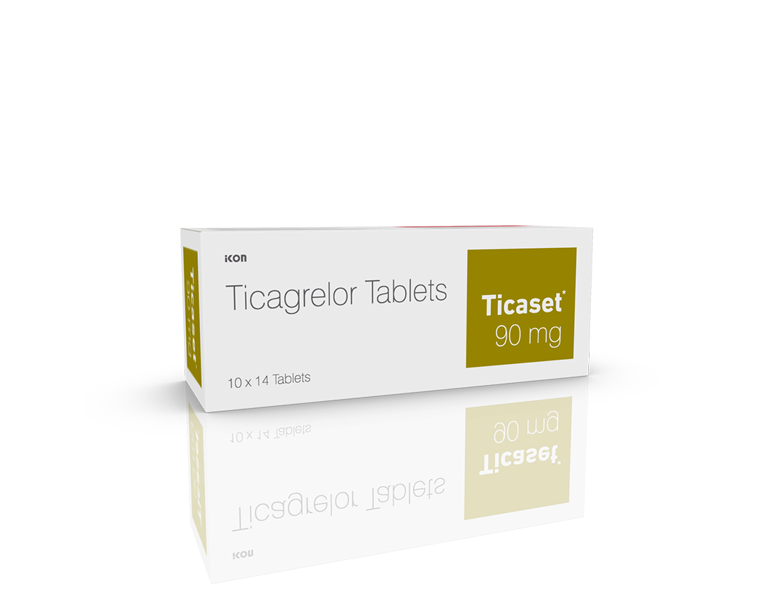 Ticaset 90 mg Tablets is an antiplatelet medication. It works by preventing platelets from sticking together, thereby decreasing the formation of harmful blood clots. This lowers the chance of heart attack or stroke.
